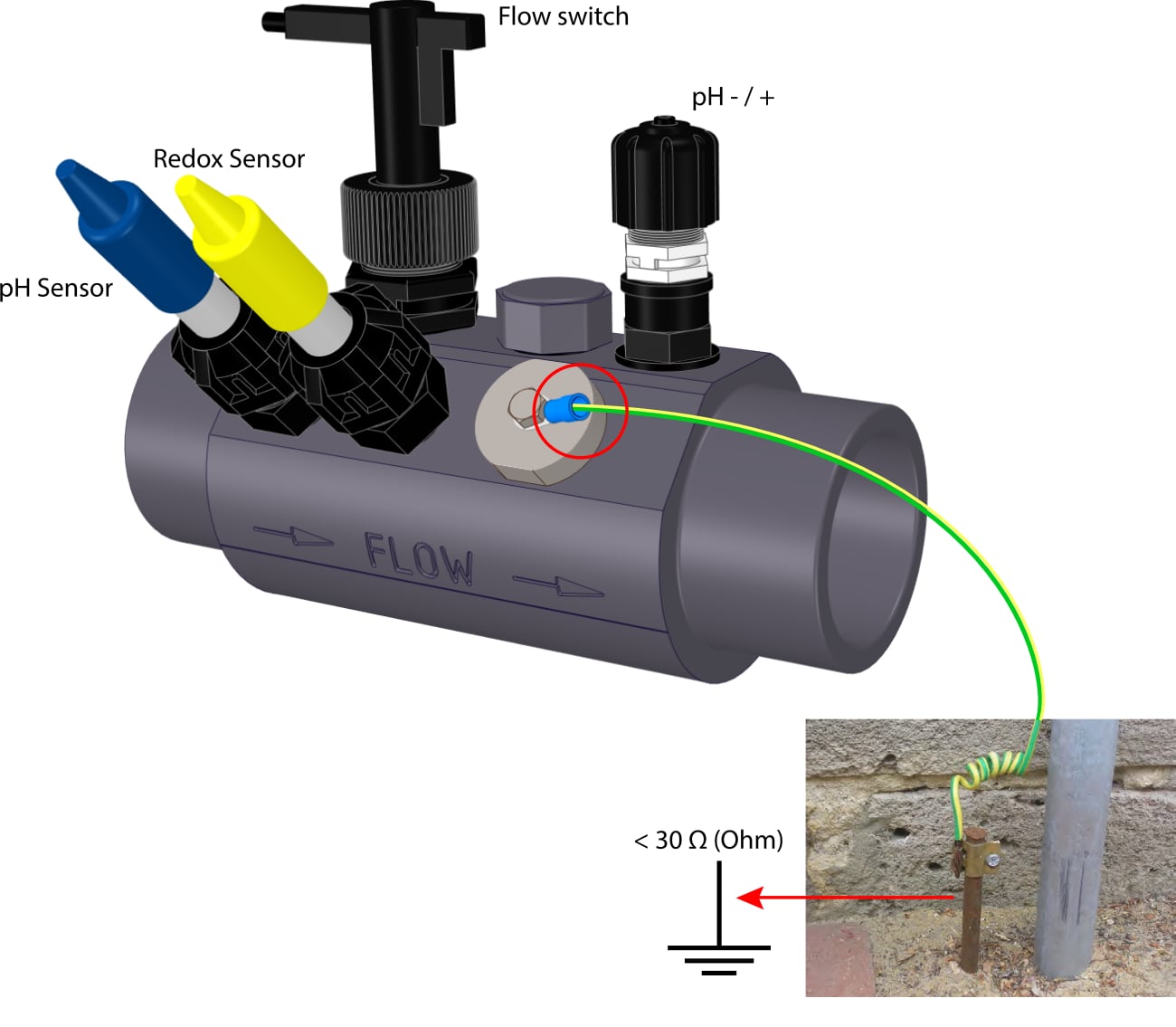 Pourquoi ? Dans une piscine, l'électricité statique ou les courants de fuite perturbent les sondes (pH et Redox), rendant la régulation automatique erratique (surdosage ou sous-dosage). En utilisant ce porte-sonde avec pool-terre intégré, vous stabilisez la lecture de vos capteurs tout en évacuant ces courants nocifs. C'est un gain de fiabilité immédiat pour votre traitement d'eau, sans achat supplémentaire.