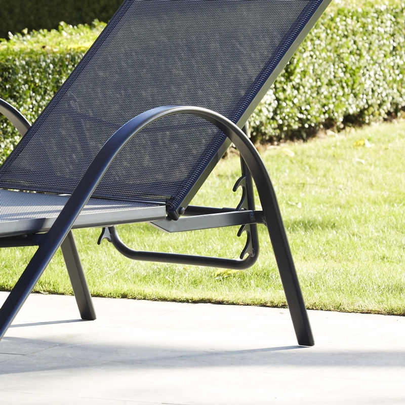 Sa structure en aluminium est anthracite, le textilène, lui, se décline en 3 tons de gris différents. Le design est novateur et vous offre un confort parfait grâce à son dossier multi-positions. Entretien facile, poids léger.